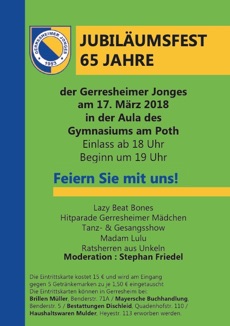 Am Samstagabend haben die Gerresheimer Jonges in der Aula des Gymnasiums am Poth ihr 65-jähriges Bestehen gefeiert.